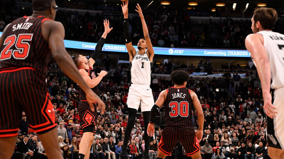 Avec 38 points, 12 rebonds et 5 passes décisives, Victor Wembanyama a mené les Spurs vers la victoire face aux Chicago Bulls. La star de la franchise de San Antonio a surtout pris ses responsabilités en fin de match. Avec un tir à 3 points, Wembanyama a remis les deux équipes à égalité à une minute de la fin. Mais ça ne s’est pas arrêté là puisqu’après avoir récupéré le ballon en défense, Wemby a endossé son costume de patron en assommant les Bulls d’un nouveau tir à 3 points.