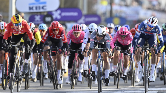 Déjà remarqué l’an dernier, où pour sa première année chez Soudal-Quickstep, il avait levé les bras à plusieurs reprises, Paul Magnier, le jeune sprinter français, est en train de crever l’écran en Belgique. Promu leader sur les classiques flandriennes par le staff de l’équipe belge, qui a relevé sa capacité à très bien figurer dans les monts et sur les pavés, le coureur tricolore s’est montré immédiatement à la hauteur en prenant la deuxième place du Het Nieuwsblad, l’une des plus grandes semi-classiques belges, avant d’enchaîner trois jours plus tard avec une nouvelle deuxième place au Grand-Prix Samyn, juste derrière... Mathieu Van der Poel. Pour un coureur de 20 ans, qui entame à peine sa deuxième saison au plus haut niveau, ces résultats impressionnent.