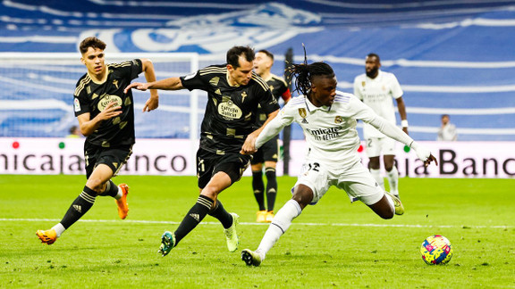 Qu'il soit aligné au milieu de terrain ou au poste d'arrière gauche, Eduardo Camavinga est une véritable locomotive. L'international français est increvable et son rendement sur le terrain ne change pas au cours d'un match. Face au Celta Vigo, ses stats ne trompent pas, le joueur a participé à 112 actions de jeu en plus d'un ratio de 94% de passes réussies. Dans le jeu, Edouardo Camavinga partage un profil semblable à celui de Luka Modric, rapidité, efficacité et technicité. En deux saisons il a déjà son immunité auprès de Carlo Ancelotti, l'entraineur italien a déclaré sa flemme pour son jeune joueur en conférence de presse après-match face au Celta Vigo : "Eduardo est intouchable, comme (Luka) Modric et comme (Toni) Kroos. Où qu'il joue, il joue très bien."