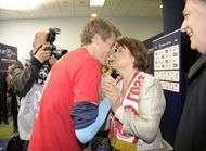 Afin de fêter au mieux le sacre, le gardien du LOSC a tenté de faire un petit bisou à la maire de la ville nordiste. D’après ce cliché, il a bien failli réussir son coup…