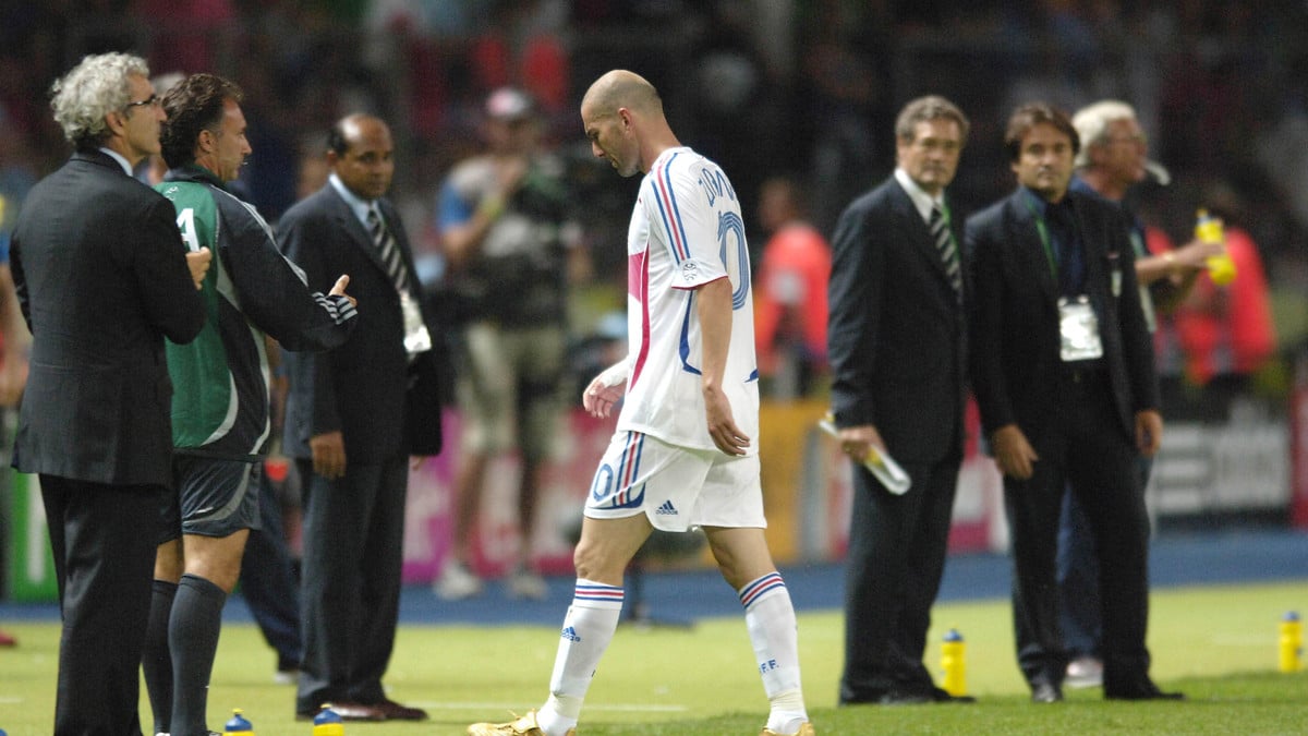 C'est bien évidemment une action qui restera gravée à vie dans la mémoire des fans de football. Pour le dernier match de sa carrière, Zinedine Zidane se retrouve face à l'Italie en finale de la Coupe du monde 2006. Et le numéro 10 va craquer en assénant le coup de boule le plus célèbre de l'histoire à Marco Materazzi. Zizou est logiquement expulsé, mais les arbitres n'ont pourtant rien vu. Et pour cause, ils sont aidés de l'écran géant dans le stade qui a diffusé les images du geste de Zinedine Zidane, alors que l'arbitrage vidéo n'était évidemment pas encore instauré. 20 ans plus tard, Raymond Domenech, alors sélectionneur de l'équipe de France, n'a toujours pas digéré.