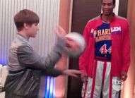 Justin Bieber est plutôt à l'aise avec un micro casque et sa choré pour ado prépubère. Mais qu'en est-il de ses talents balle en main ? Réponse en vidéo avec les Harlem Globe Trotters et la mèche folle la plus « hype » du moment.