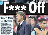 F*** OFF BACK TO ARGENTINA VA TE FAIRE F****** ET RETOURNE EN ARGENTINE Une réaction inconcevable en Angleterre. Le Daily Star veut voir l'Argentin quitter la Premier League et rappelle tout ce que Mancini a fait pour Carlos Tevez. Depuis mercredi, l'Apache essaye de rattraper le coup. Trop tard pour l'Angleterre et pour Mancini. Le temps où Tevez faisait le spectacle en Premier League est bientôt révolu.