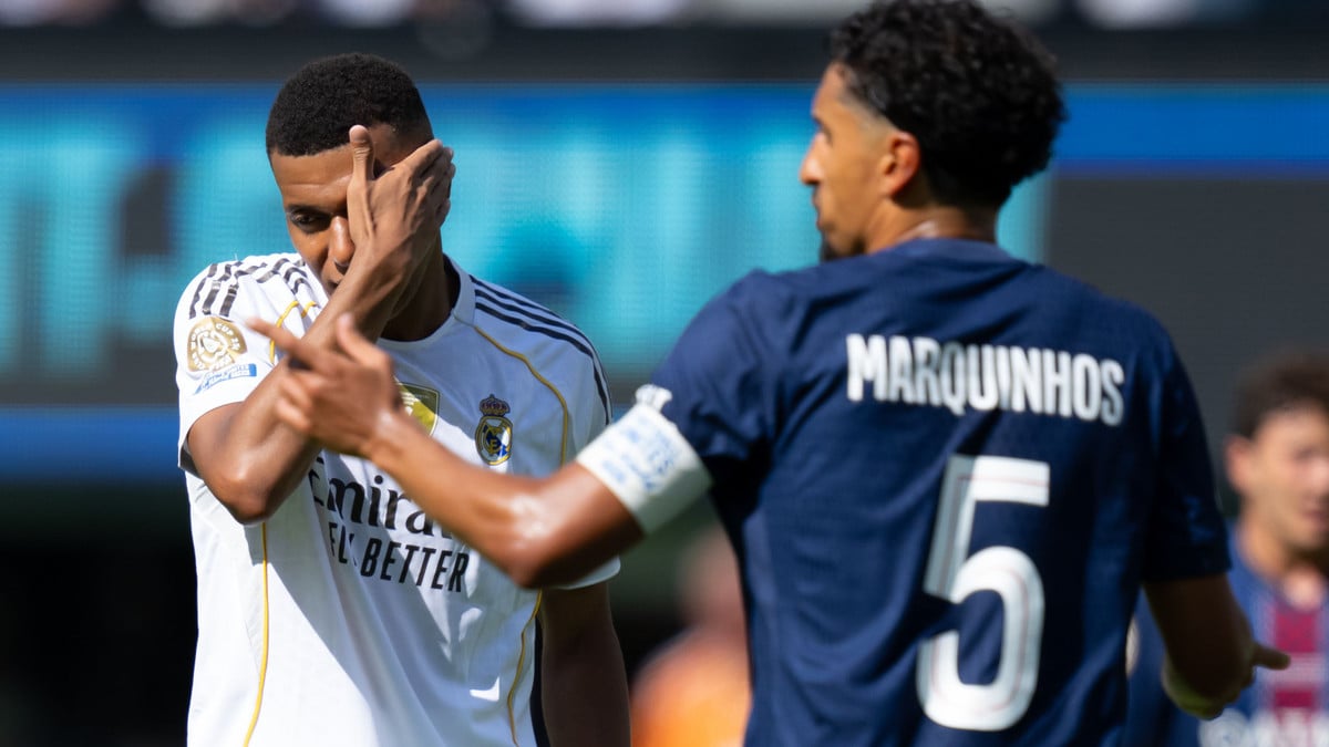 Au point où à la nomination de Luis Enrique en tant qu’entraîneur du PSG pour la saison 2023/2024, ce qui fut l’ultime exercice de Kylian Mbappé comme joueur parisien, des votes ont été effectués pour désigner le capitaine du Paris Saint-Germain. Marquinhos a remporté les suffrages et a donc conservé le brassard qu’il arborait au bras depuis l’été 2020. Personnalité de RMC, Julien Cazarre est revenu sur l’épisode du capitanat au PSG qui a pris place quelques semaines seulement après que Mbappé ait hérité du statut de capitaine de l’équipe de France. « Mbappé n’arrive pas à donner quelque chose de naturel dans son côté empathique. L’histoire avec Brahim Diaz. Ça révèle tout ce qu’il est : un mec qui est à côté humainement. C’est-à-dire qu’il essaie de tout faire comme un mec qui maîtrise une com, mais le problème c’est qu’on a besoin d’un minimum de sincérité dans le foot pour aimer un mec. Il fait un tweet à côté, au moment où Griezmann part dans l’anonymat le plus total parce qu’il a réclamé le brassard comme il l’a fait au PSG, il a voulu la peau de Marquinhos, il ne l’a pas eu ».