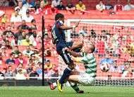 Pour leur premier match de l'Emirates Cup, les Gones ont concédé le nul (2-2) après avoir mené 2-0.Un coup franc formidable de Michel Bastos et un but de Novillo avait permis aux Lyonnais de se détacher. En fin de match, Hooper (82e) et Samaras (89e) ont permis au Celtic de revenir au score.