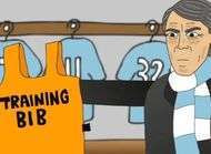 Mario Balotelli se croit plus fort que Messi et Ronaldo et ne veut rien faire pour changer son attitude. Du coup, Roberto Mancini est obligé de prendre des sanctions en employant la manière forte.Les medias anglais n'en finissent plus de se moquer des dernières frasques de Mario Balotelli. Entre la chasuble qu'il n'a jamais pu enfiler ou les flechettes envoyées aux jeunes de Manchester City, Balotelli est la risée du football anglais. Du coup, des créateurs de cartoon se sont faits un petit plaisir avec la chasuble comme arme de disuasion utilisée par Mancini.