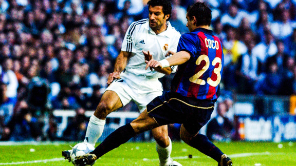 « Jamais Figo n’a voulu venir au Real Madrid. Tout se passe en juin 2000. Le Real Madrid présidé par Lorenzo Sanz vient de gagner sa deuxième Ligue des champions en 3 ans après 32 ans de sécheresse. Le Real Madrid est de nouveau sur le toit de l’Europe et Lorenzo Sanz, fin politicien, se dit que c’est le moment de convoquer des élections. Il est sûr de gagner. Il a face à lui Florentino Pérez, homme d’affaires très célèbre, président d’ACS qui est devenue la première entreprise de BTP mondial. Il se présente avec un plan : il faut recruter celui qui est à l’époque l’un des deux ou trois meilleurs joueurs du monde : Figo capitaine du Barça. Pour la campagne, il contacte José Veiga, qui était son agent en lui disant : « on fait un contrat, si je gagne les élections, je paye la clause libératoire de Figo de 60M€. Si je perds, je vous paye une somme pour le dédommagement », entre 1 et 4M€. José Veiga dit à Figo : « on a un super plan, il ne va jamais gagner, c’est impossible que Pérez gagne. On laisse courir et on ne dément pas l’information que tu as un accord avec le Real Madrid. (puisque c’était la publicité de la campagne de Florentino Pérez) On va se faire des thunes sans rien faire ». Figo fait confiance à son agent qui signe le contrat avec Florentino Pérez »