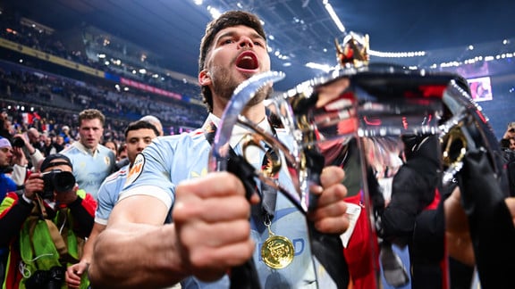 Mais le numéro 10 français a surtout eu quelques mots pour son coéquipier Thomas Ramos, qui n’ont pas manqué de faire réagir. « Il faut féliciter Tom, qui a des grosses couilles comme on dit dans le jargon » a glissé Matthieu Jalibert, avant d’évoquer son cas personnel et son parcours pas toujours linéaire avec le XV de France. « Tout n'a pas été toujours facile pour moi en équipe de France, j'avais l'occasion de m'exprimer et je suis juste content d'avoir pu être là avec les mecs et été moi-même. Même si tout n'a pas été parfait, on a donné tout ce qu'on pouvait. Je me suis éclaté, j'ai tout donné et c'est conclu par un titre. C'est beaucoup de joie ».