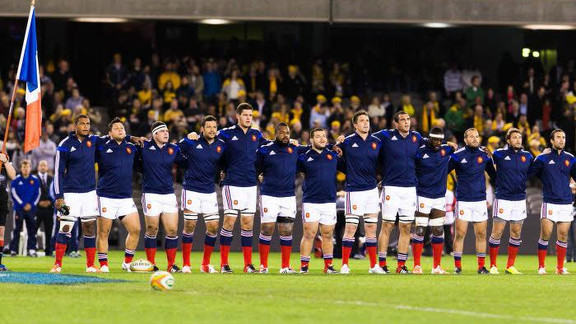 XV de France : Dulin - Huget, Bastareaud, Fofana, Bonneval – Tales, Parra - Ouedraogo, Chouly, Dusautoir - Maestri, Flanquart - Slimani, Guirado, Ménini